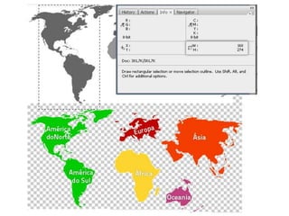 O documento aborda a criação de um mapa interativo utilizando CSS, onde continentes são destacados ao passar o mouse e legendas são apresentadas através da pseudo-classe :target. A utilização de sprites CSS é discutida para a animação e troca de imagens. Além disso, são apresentadas regras CSS para estilizar elementos, exibir informações adicionais e garantir interatividade no mapa.