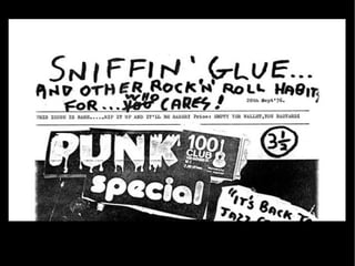 O movimento punk surgiu na década de 1970 como uma manifestação cultural juvenil semelhante aos movimentos dos anos 1950 e 1960, caracterizado por estilo musical, moda e comportamento. O punk rock chegou à Inglaterra influenciando jovens, que passaram a promover o estilo por meio de fanzines como o Sniffin' Glue. Ideologicamente, o punk pregava a liberdade de crença e se aproximou do anarquismo, dando origem ao anarcopunk. A música punk sempre teve um caráter de contestação, seja musical