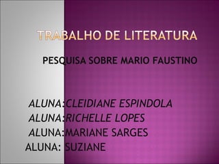 1) O documento discute a vida e obra do poeta brasileiro Faustino Alencar;