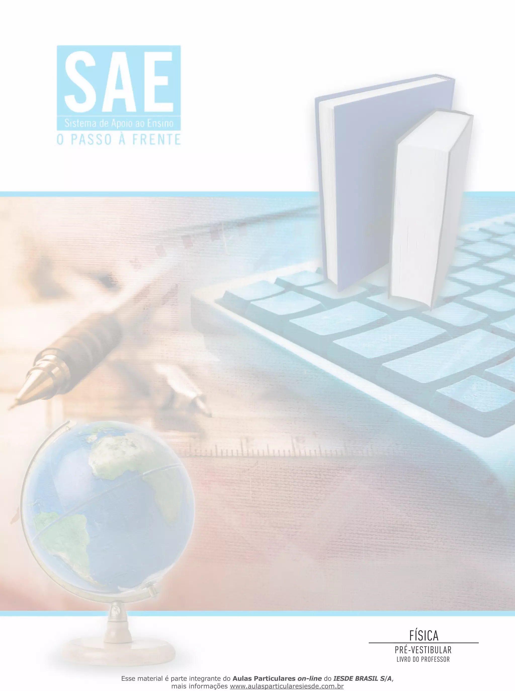 1) O documento apresenta um livro do professor de física para pré-vestibular, contendo tópicos sobre cinemática escalar, velocidade média e outros conceitos básicos de movimento.
