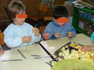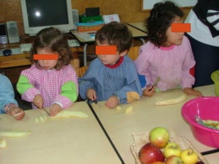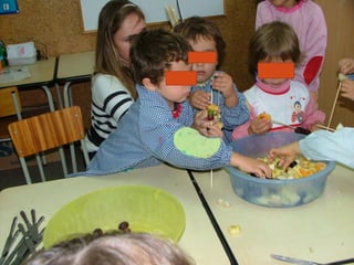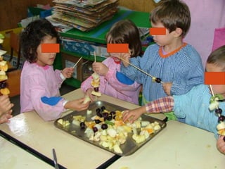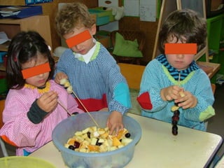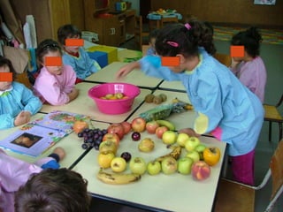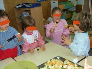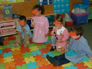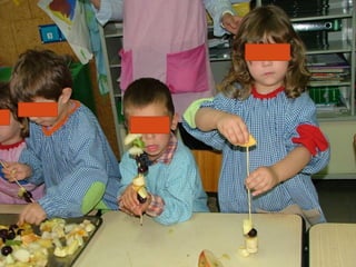 No mês de outubro, as crianças comemoraram vários dias especiais relacionados à música, animais e correios com atividades como ouvir diferentes tipos de música, visitar uma loja de animais e os correios, e desenhar selos. Elas também aprenderam sobre alimentação ao imitar o artista Arcimboldo e fazer espetadas de frutas.