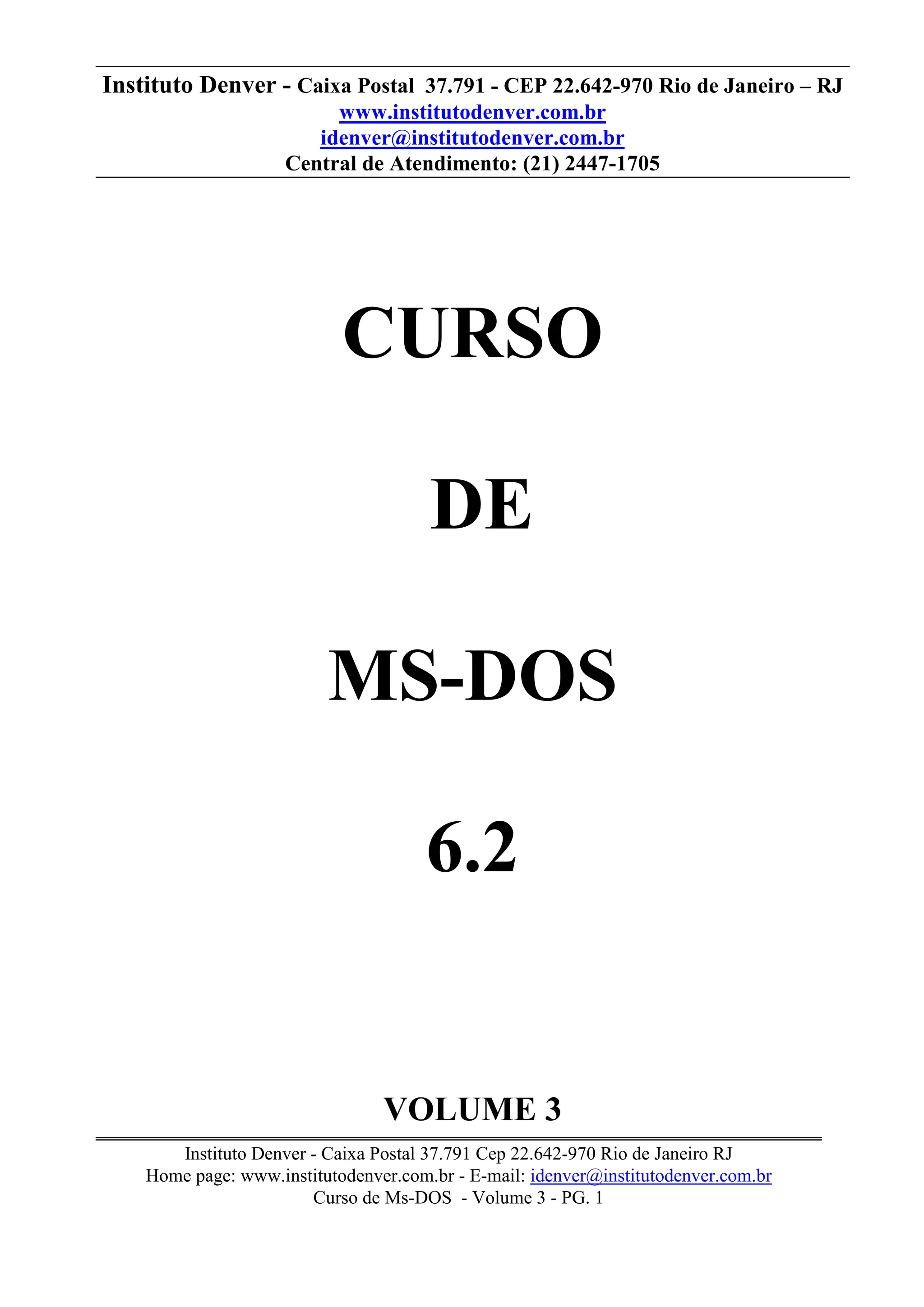 2) Inclui explicações sobre redirecionamento de entrada e saída, configuração do AUTOEXEC.BAT e CONFIG.SYS, e comandos como DISKCOPY, LABEL e FORMAT.