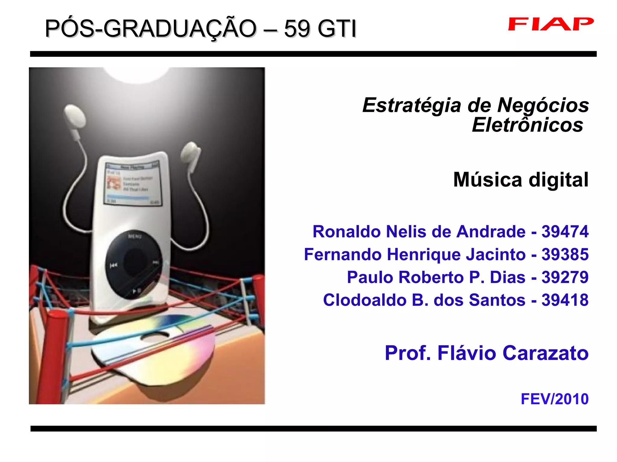 O documento discute como a música digital inovou a indústria fonográfica, movimentando bilhões através de downloads e streaming. Apesar disso, a pirataria causou grandes prejuízos aos artistas e gravadoras, com 1 em cada 3 discos vendidos sendo pirata em 2005. A música digital criou novos modelos de negócios e oportunidades para a indústria, apesar dos desafios apresentados pela pirataria.