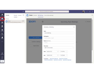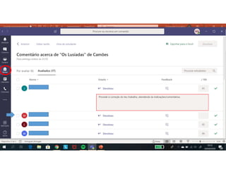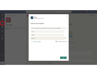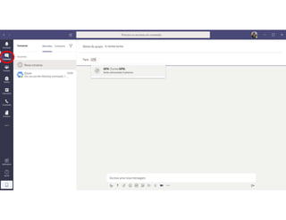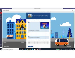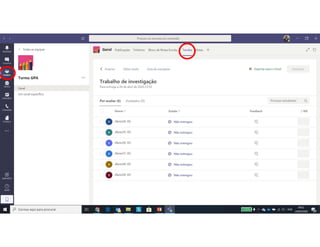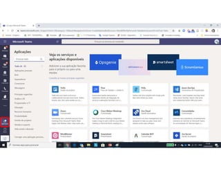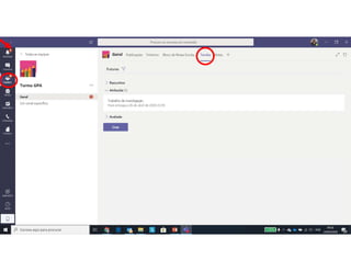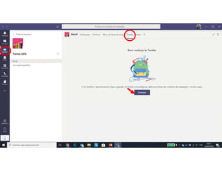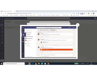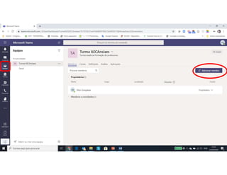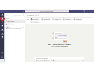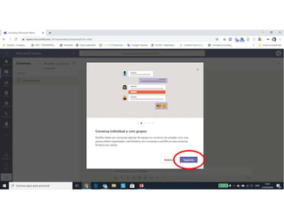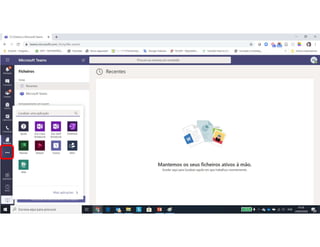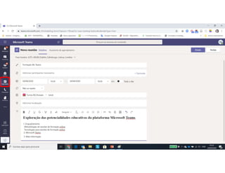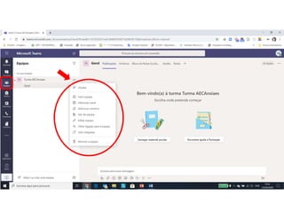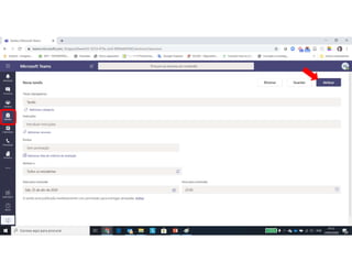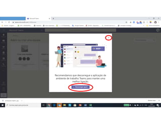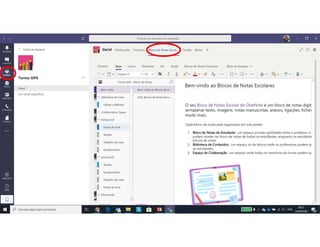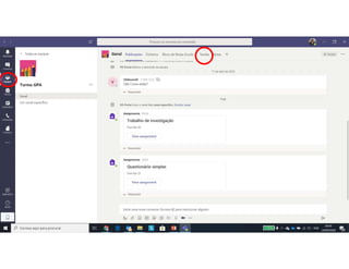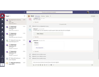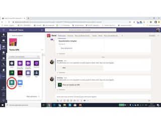 Este documento discute o uso da plataforma Microsoft Teams para ensino online durante a pandemia COVID-19. Ele descreve as metodologias de ensino síncrono e assíncrono usando ferramentas como videoconferência e atividades pré-gravadas. Também apresenta o Microsoft Teams como uma opção para fornecer conteúdo, avaliações, discussões e projetos online.