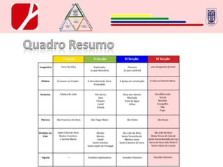 O documento descreve os elementos que compõem a mística e o imaginário de determinados grupos, incluindo símbolos, patronos, modelos de vida e grandes figuras que transmitem valores e promovem uma sensação de pertença.