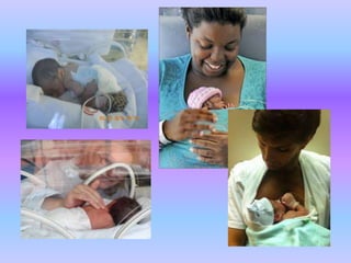 O documento discute o Método Canguru, que envolve manter o bebê recém-nascido em contato pele a pele com a mãe para favorecer o vínculo entre eles. O objetivo é reduzir a separação entre mãe e bebê, especialmente para prematuros e de baixo peso, promovendo os benefícios do toque e contato para o desenvolvimento físico e emocional da criança. O texto também aborda as etapas do método e seus benefícios comprovados para a saúde da