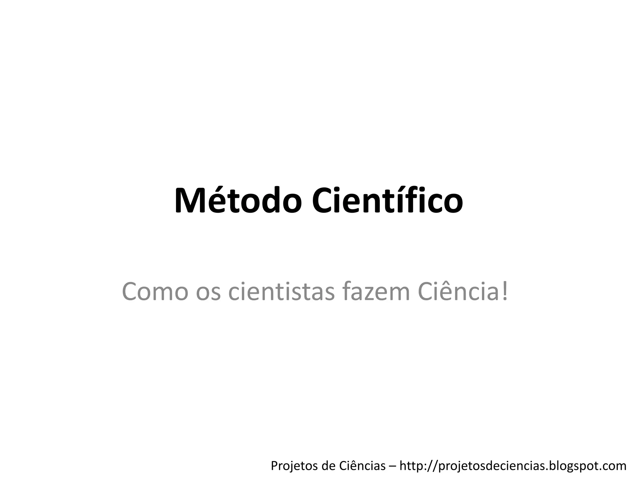 O documento descreve o método científico, incluindo a formulação de hipóteses, realização de experimentos para testar hipóteses, e desenvolvimento de teorias com base em evidências. Cientistas fazem observações usando instrumentos como telescópios e microscópios, e seguem um processo padronizado de pesquisa que envolve levantar questões, propor hipóteses, testá-las através de experimentos e chegar a conclusões.