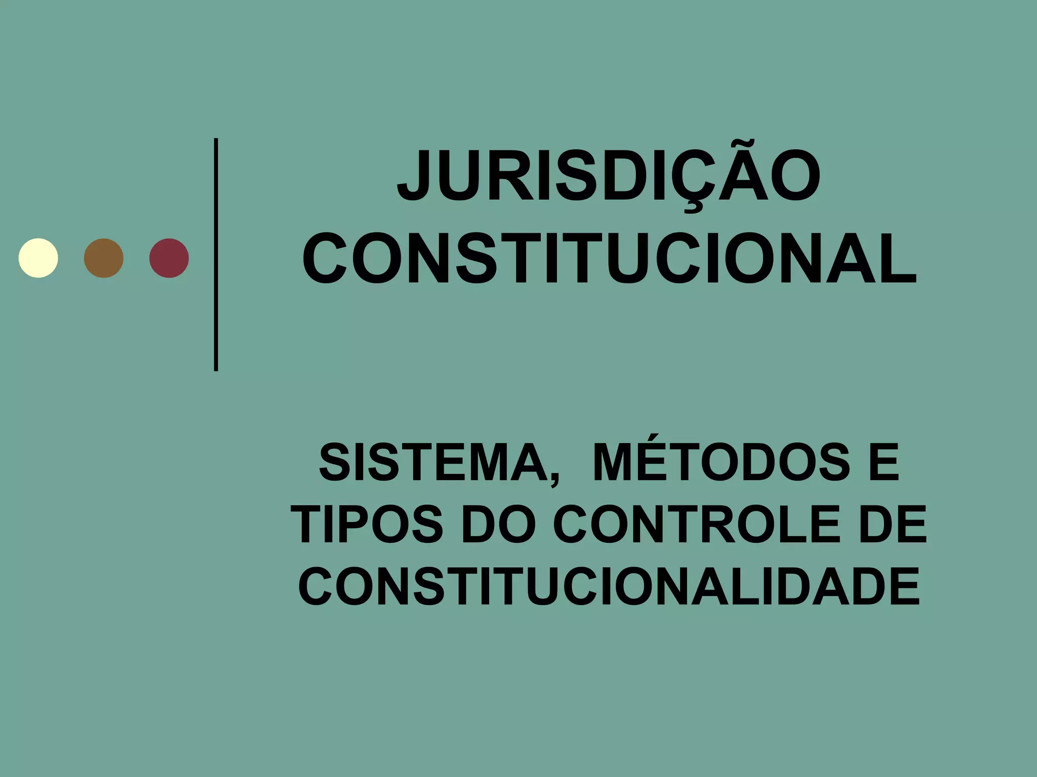 O documento discute os sistemas, métodos e tipos de controle de constitucionalidade no Brasil. Apresenta a evolução histórica do controle desde o Império até a Constituição de 1988, incluindo os modelos preventivo, jurisdicional e misto, além dos métodos abstrato, concreto, concentrado e difuso.