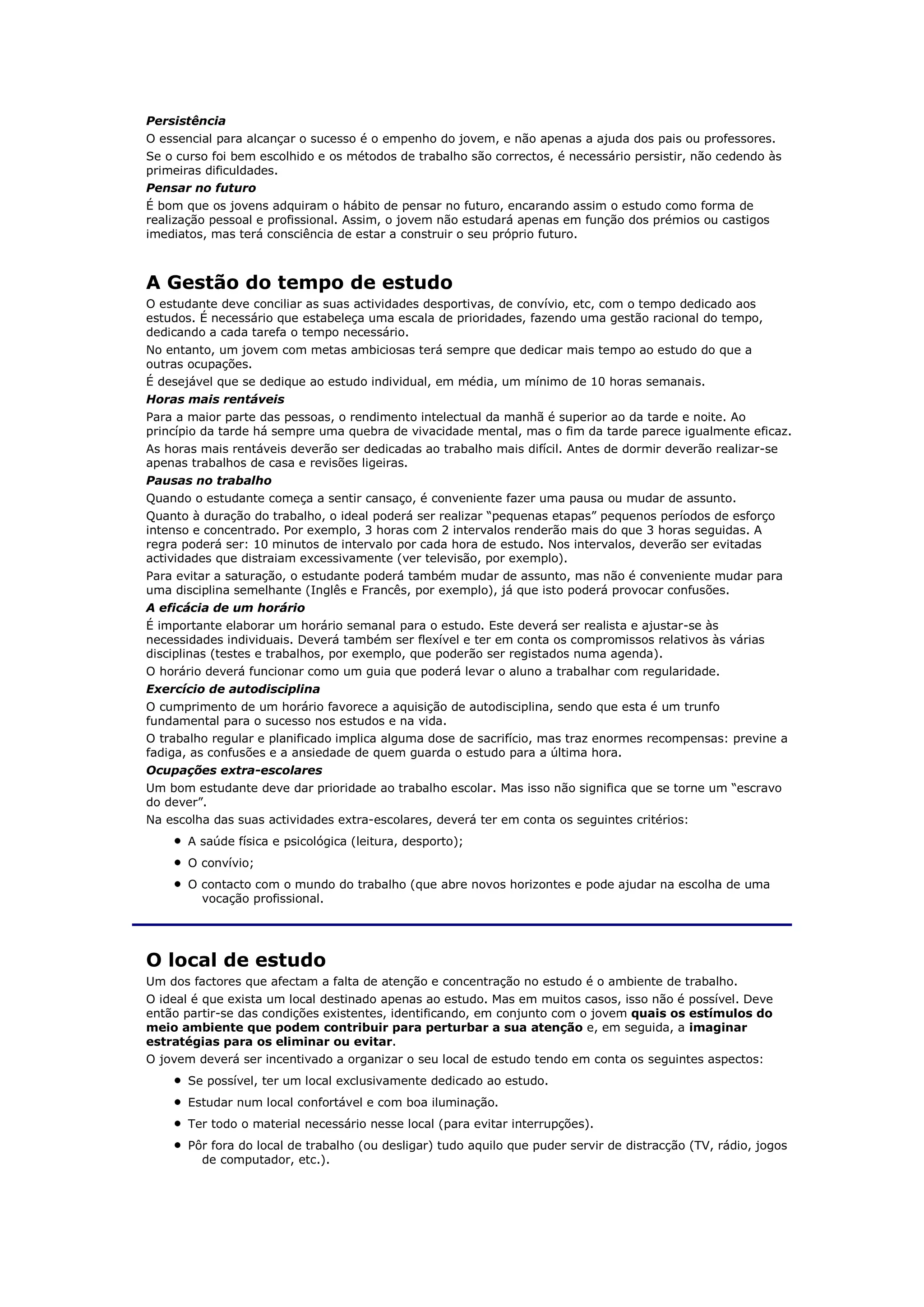O documento fornece dicas sobre como estudar de forma eficaz, gerir o tempo de estudo e elaborar trabalhos escolares. Recomenda a persistência no estudo, pensar no futuro e estabelecer prioridades e horários de estudo. Também sugere pausas regulares, locais silenciosos para estudar, leitura ativa, tomada de apontamentos e elaboração de planos antes de redigir trabalhos.