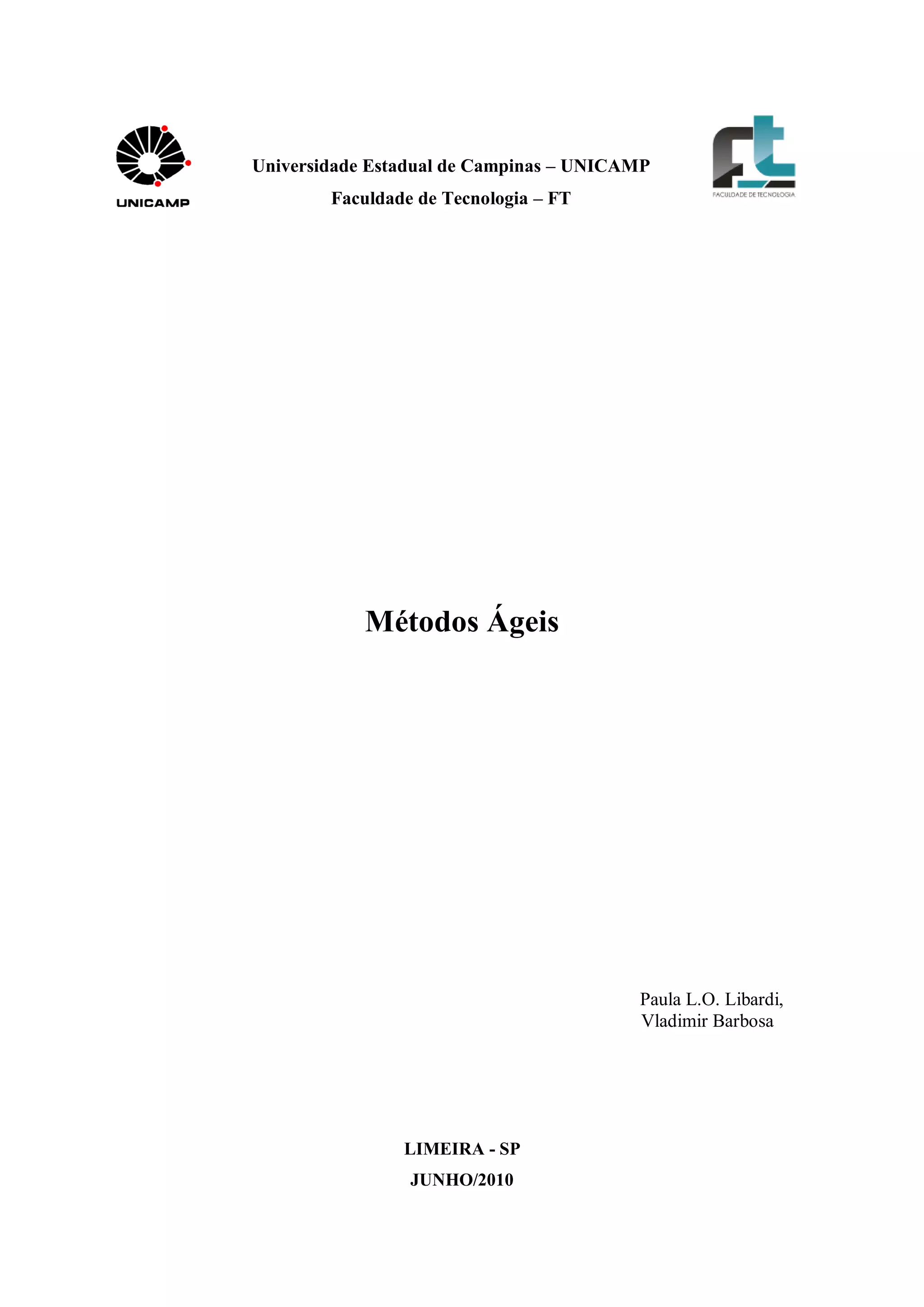 Este documento resume um estudo sobre metodologias ágeis de desenvolvimento de software. Ele apresenta um breve estudo sobre metodologias ágeis em geral e descreve detalhadamente os papéis, regras e práticas da metodologia Scrum e da linguagem Extreme Programming (XP). Além disso, compara os processos propostos pelos métodos ágeis XP, ScrUM, FDD e ASD.