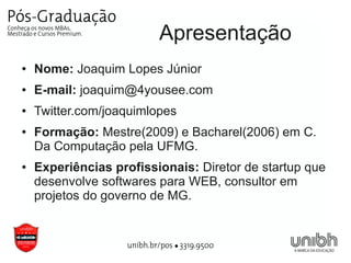 O documento apresenta uma disciplina sobre Metodologias Ágeis que tem como objetivos: (1) Apresentar metodologias ágeis existentes e suas técnicas; (2) Fornecer noções sobre a mudança cultural envolvida e boas práticas de qualidade; (3) Permitir a compreensão das diferenças entre processos ágeis e sua adequação a projetos de TI.