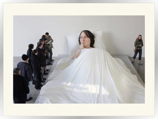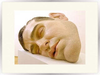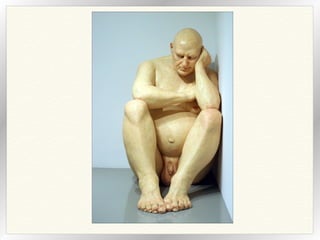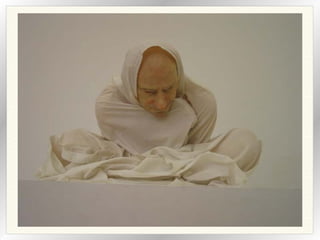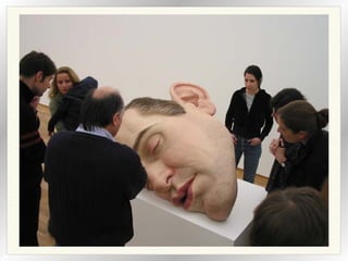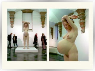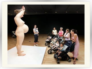 Ron Mueck é um escultor hiper-realista australiano nascido em 1958. Ele é conhecido por criar esculturas em tamanho real que parecem extremamente realistas, como sua escultura grávida de 2,52 metros de altura. Mueck passa muito tempo detalhando cada peça para criar obras que parecem quase vivas, como a pele, cabelos, unhas e veias. Suas esculturas frequentemente exploram temas como maternidade, solidão e mortalidade.