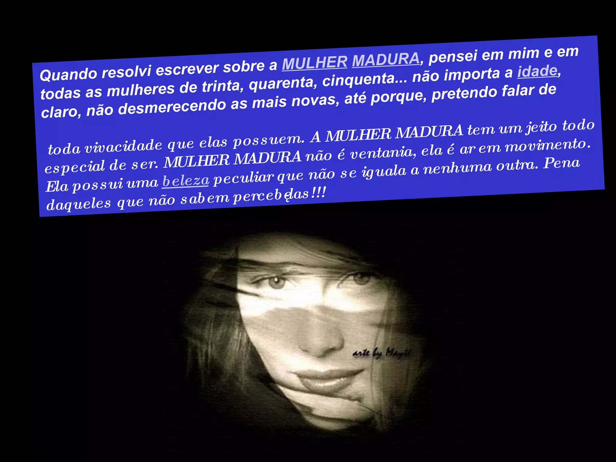 O documento descreve as qualidades distintivas da mulher madura, contrastando como ela age em comparação com mulheres mais novas. A mulher madura é sábia, experiente, flexível, sensível e uma mestra na arte de amar. Ela não se sente velha, mas sim experiente, e possui uma beleza peculiar que encanta aqueles que sabem percebê-la.