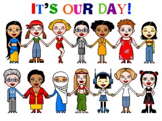 O documento discute os desafios enfrentados por mulheres em todo o mundo, incluindo altas taxas de pobreza, analfabetismo e mortalidade materna. Também destaca os direitos das mulheres segundo a ONU, como o direito à vida, igualdade, educação, saúde e participação política.