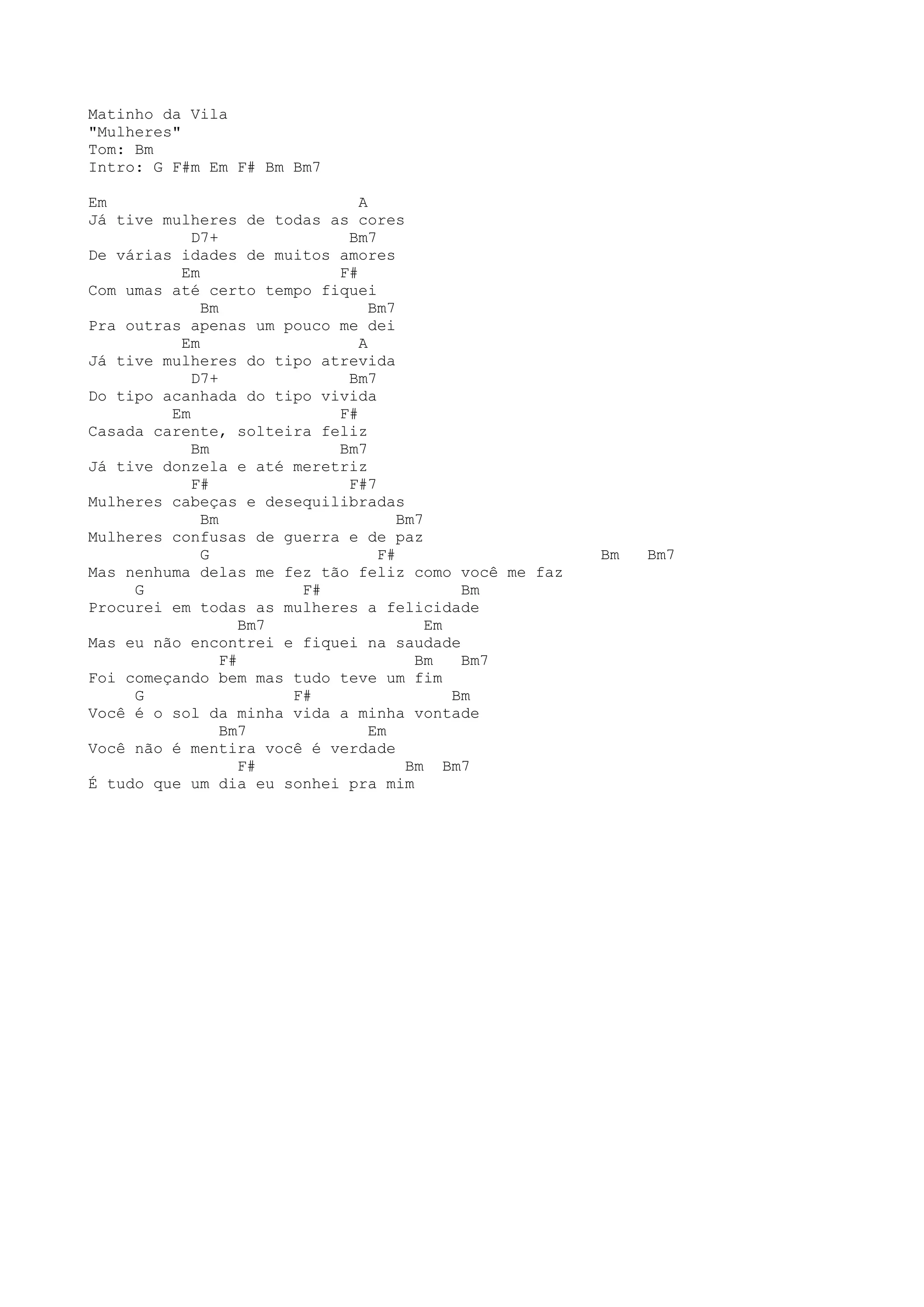 A canção descreve as diferentes mulheres com as quais o cantor se relacionou no passado, incluindo de diferentes cores, idades e tipos de personalidade. No entanto, nenhuma delas o fez sentir tão feliz quanto a mulher atual, que ele descreve como o "sol da minha vida" e a realização de seus sonhos.