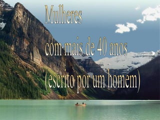 O documento lista 11 razões pelas quais o autor valoriza mais as mulheres com mais de 40 anos do que as mais jovens. Ele acredita que mulheres mais velhas são mais seguras de si mesmas, independentes e honestas, e menos interessadas em agradar os outros. No entanto, o autor também critica alguns homens nessa faixa etária por se acharem e preferirem mulheres mais novas.