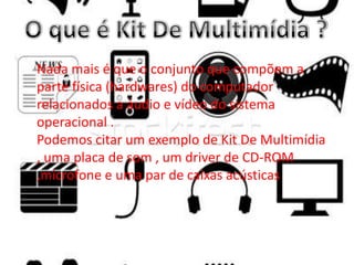 O documento descreve os principais tipos de discos ópticos graváveis e regraváveis, como CD-R, CD-RW, DVD-R, DVD-RW e VCD, explicando suas características e capacidades em relação à gravação e armazenamento de dados, músicas e vídeos.