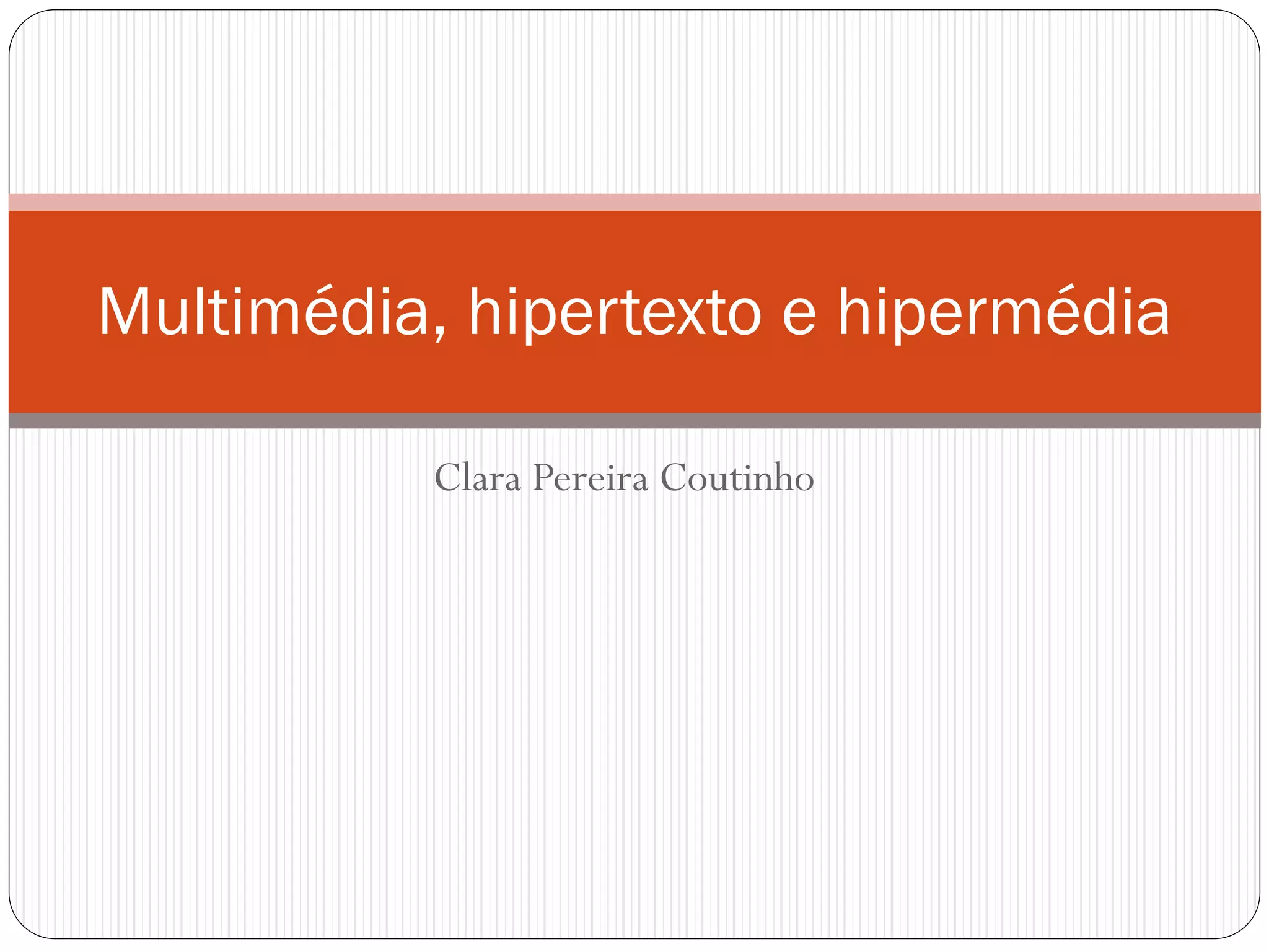 O documento descreve a evolução do conceito de multimédia através de três fases: 1) apresentações não digitais com vários formatos de mídia, 2) pacotes de aprendizagem à distância com múltiplos formatos, 3) documentos digitais interativos com texto, imagens, vídeo e áudio. Também discute a organização não linear da informação em estruturas como hierárquica e em rede no hipertexto e hipermídia.