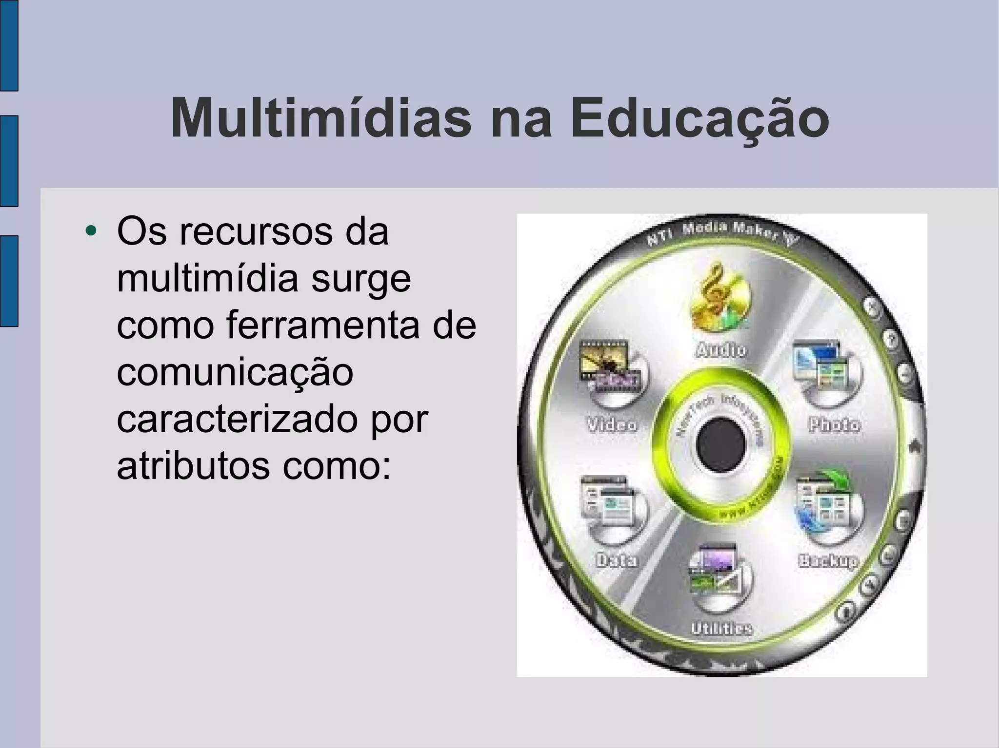 As multimídias na educação oferecem interatividade, mobilidade e globalização para os alunos, permitindo que eles opinem e interajam. Os avanços tecnológicos aumentam a capacidade de comunicar informações de forma mais eficiente e rápida para os alunos. Os ambientes de hipermídia constituem a tecnologia mais recente para integrar e contextualizar o conhecimento.