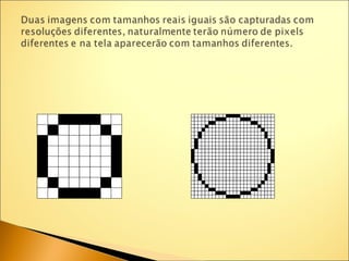 O documento discute conceitos fundamentais de processamento digital de imagens, incluindo tipos de informações visuais e descritivas, áreas de processamento de imagens, visão computacional e computação gráfica, modelos de captura, representação e visualização de imagens digitais.