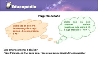 - Exemplos para consolidar o entendimento das propriedades dessas operações no conjunto dos números inteiros.