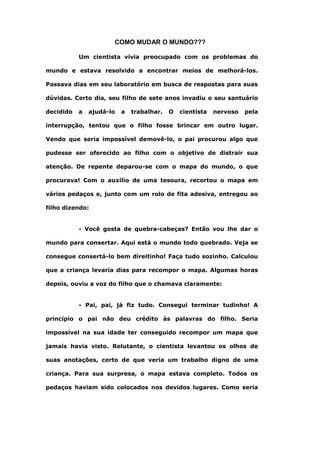 O cientista dá ao seu filho de 7 anos um quebra-cabeça do mapa mundial recortado para distraí-lo. Surpreendentemente, o menino consegue recompor o mapa em pouco tempo usando uma estratégia inusitada: ele primeiro recompôs a figura de um homem que viu no verso dos pedaços de papel, sabendo como ele era, e ao consertar o homem automaticamente consertou o mapa também.