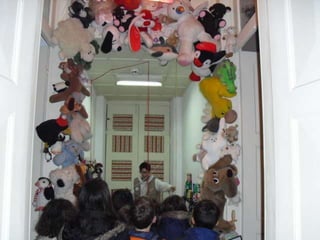 Uma família visitou o Museu do Brincar, onde participaram de atividades como o jogo Fukuwarai, assistiram a um teatro de sombras e marionetes, e visitaram exposições sobre a escola antiga e o túnel da transformação da borboleta.