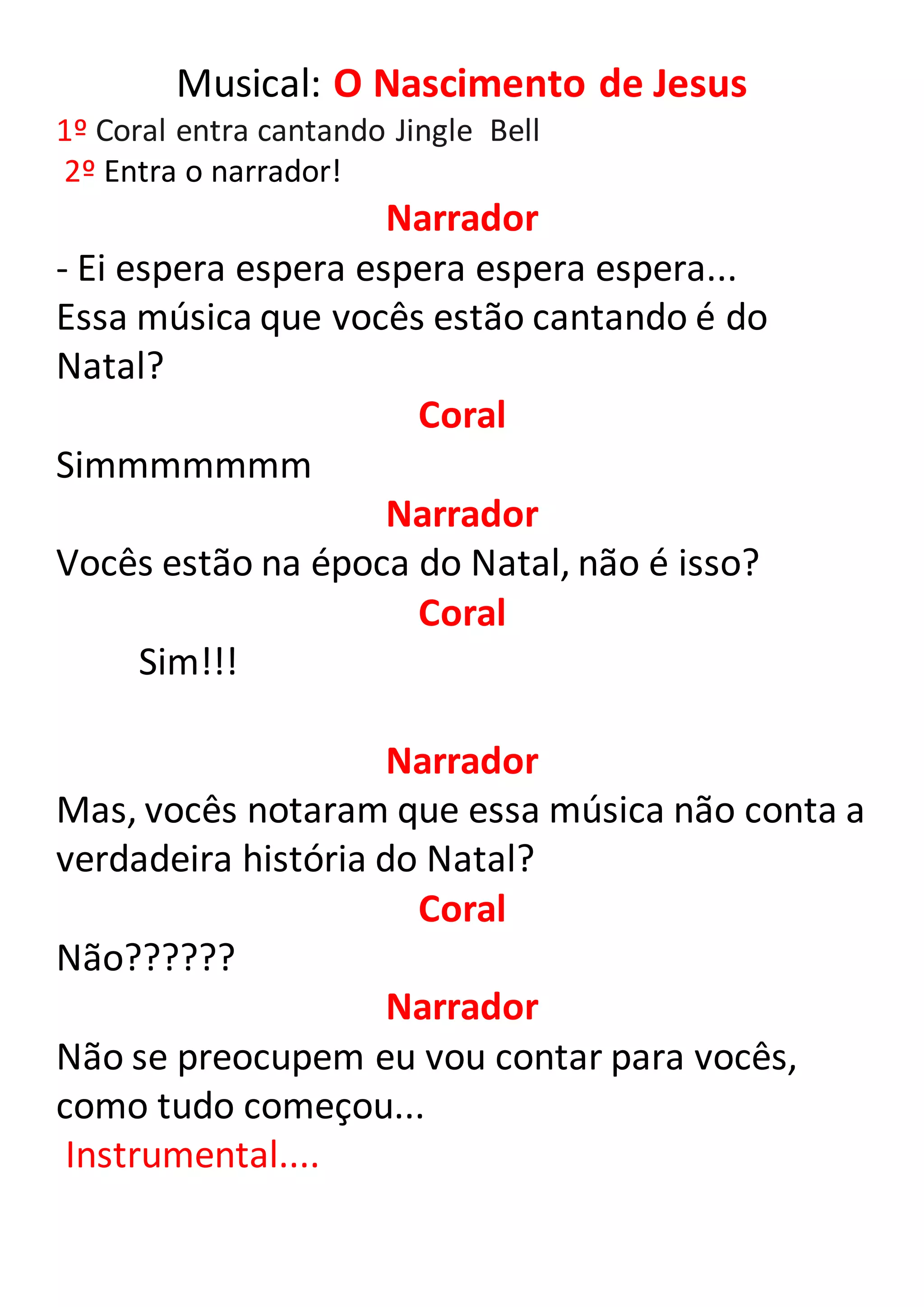 A história começa com um coral cantando sobre o Natal. O narrador conta a verdadeira história do nascimento de Jesus: uma jovem chamada Maria foi escolhida por Deus para ser a mãe de Jesus; um anjo anuncia a Maria que ela conceberá um filho chamado Jesus; José, noivo de Maria, também recebe uma mensagem de um anjo; Maria e José viajam para Belém, onde Jesus nasce; reis magos visitam o menino Jesus recém-nascido trazendo presentes.