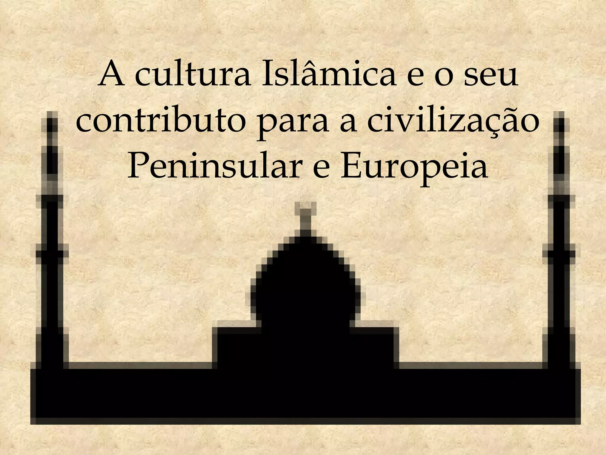 1) A civilização islâmica foi cosmopolita, recebendo e traduzindo obras de filósofos e cientistas gregos e romanos para árabe.