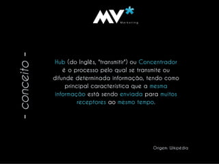 O documento descreve o modelo de negócios da MV*Marketing, uma agência de marketing terceirizada que oferece serviços de marketing e comunicação por meio de uma rede de parceiros especializados. A MV*Marketing funciona como departamento de marketing externo para empresas, auxiliando na execução de projetos de forma ágil e com custos reduzidos.