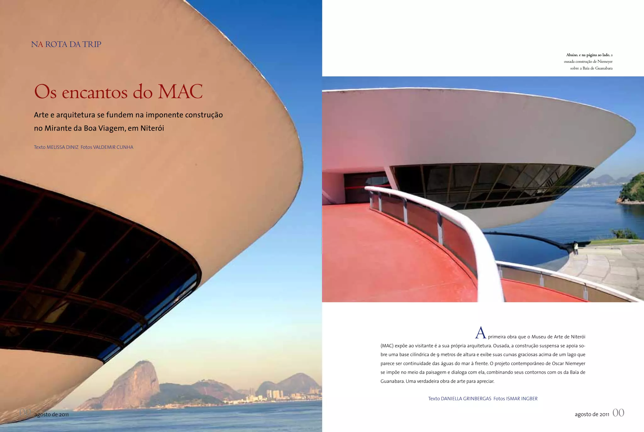 O Museu de Arte Contemporânea de Niterói (MAC) é uma ousada construção de Oscar Niemeyer sobre a Baía de Guanabara que combina arquitetura e arte. O MAC abriga uma coleção de mais de 1500 obras de importantes artistas brasileiros e tem exposições temporárias, incluindo mostras do italiano Bruno di Bello e do brasileiro Vanderlei Lopes em agosto.