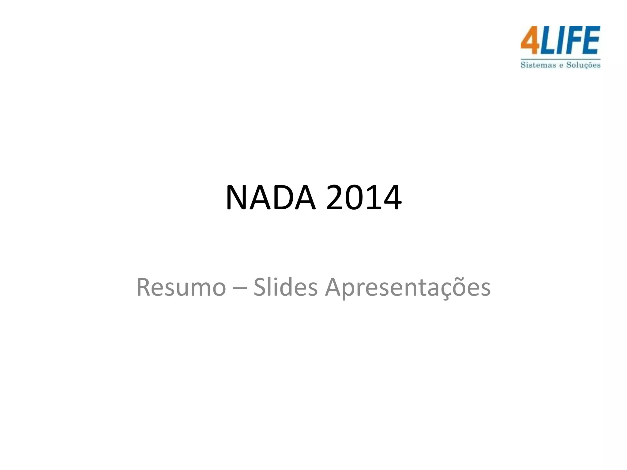 Este documento parece ser um resumo de slides de apresentação para o evento NADA 2014. Não contém nenhum conteúdo ou informações além do título "Resumo – Slides Apresentações" e o endereço de um site.