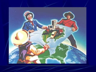 O NAFTA é um bloco econômico formado pelos Estados Unidos, Canadá e México com o objetivo de reduzir barreiras comerciais e estimular o comércio entre os países membros. O tratado busca eliminar tarifas de importação, facilitar o fluxo de mercadorias e serviços, e incentivar investimentos entre os países para aumentar a produtividade e competitividade da região.