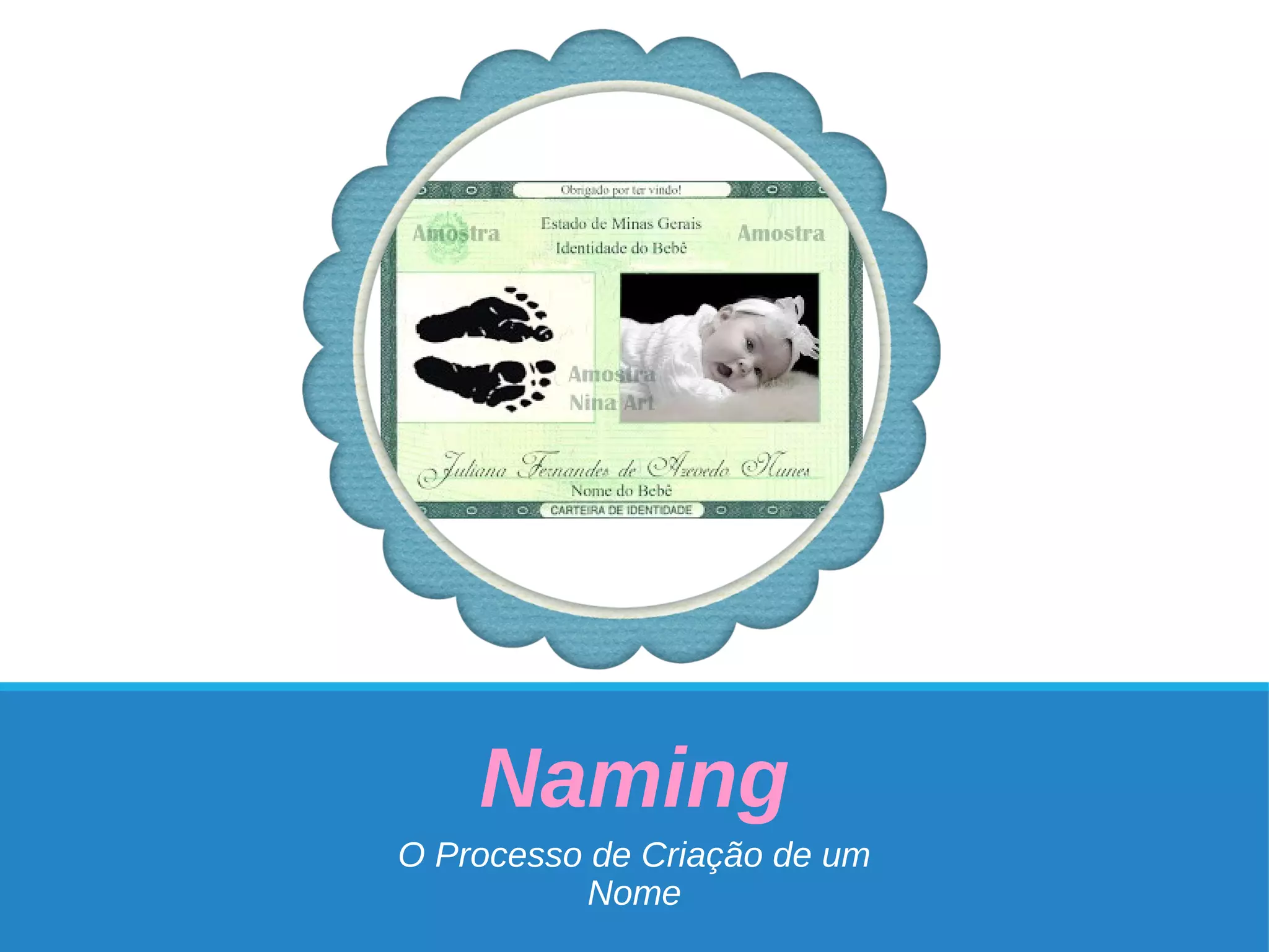 O documento discute o processo de criação de nomes, incluindo tipos de nomes, fontes de inspiração e o processo de brainstorming e votação para escolher um nome adequado.