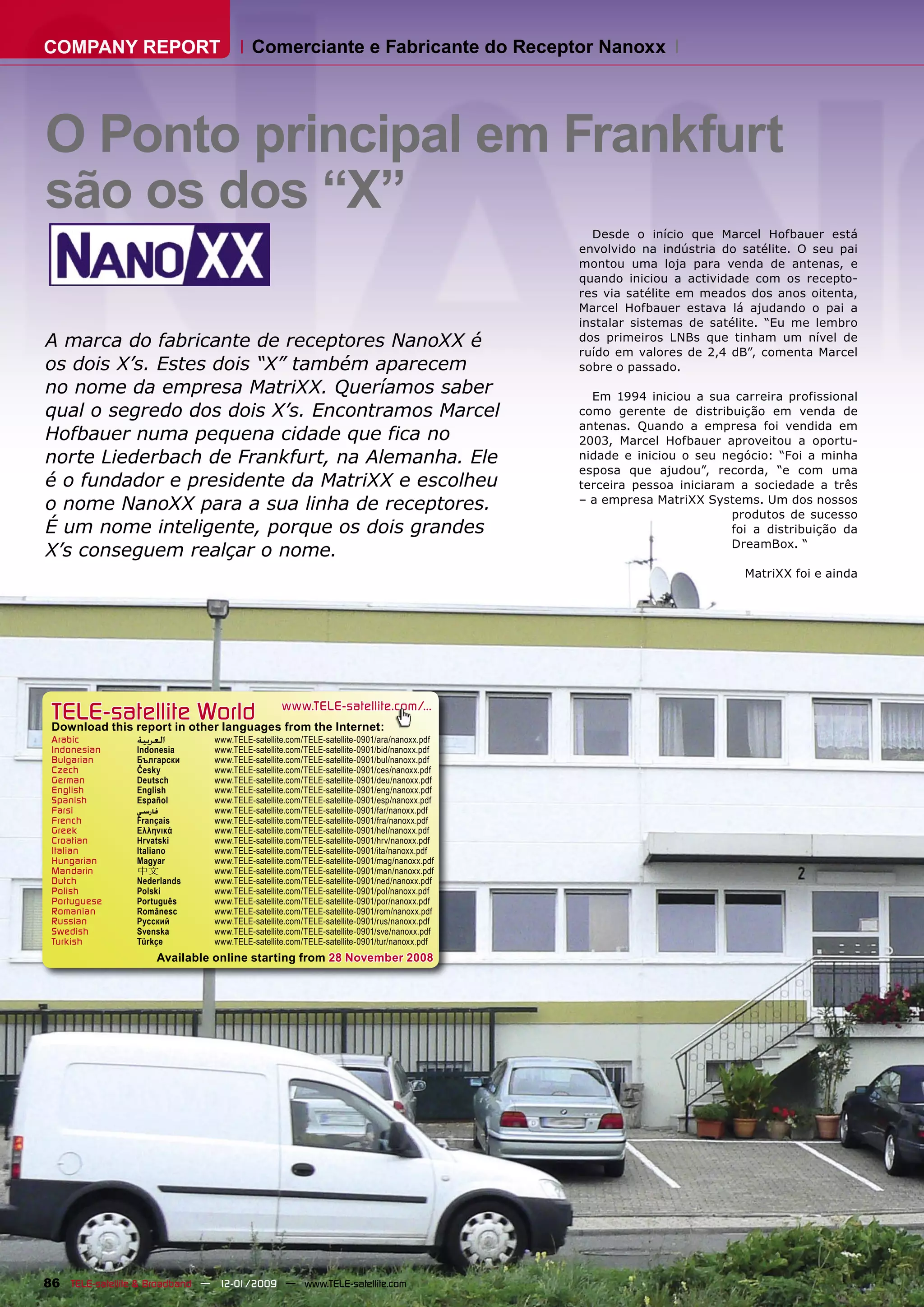 Marcel Hofbauer, fundador da Matrixx Systems, começou sua carreira em uma loja de antenas de seu pai e, em 2006, lançou a marca Nanoxx de receptores de satélite, focando na melhoria do atendimento ao cliente e na implementação de suas ideias técnicas. A empresa, que opera principalmente na Alemanha e na UE, espera aumentar as vendas de seus produtos, introduzindo inovações como receptores integrados à Internet. A visão de Hofbauer inclui expandir as capacidades práticas dos receptores satélites, abordando a crescente importância da segurança e conectividade.