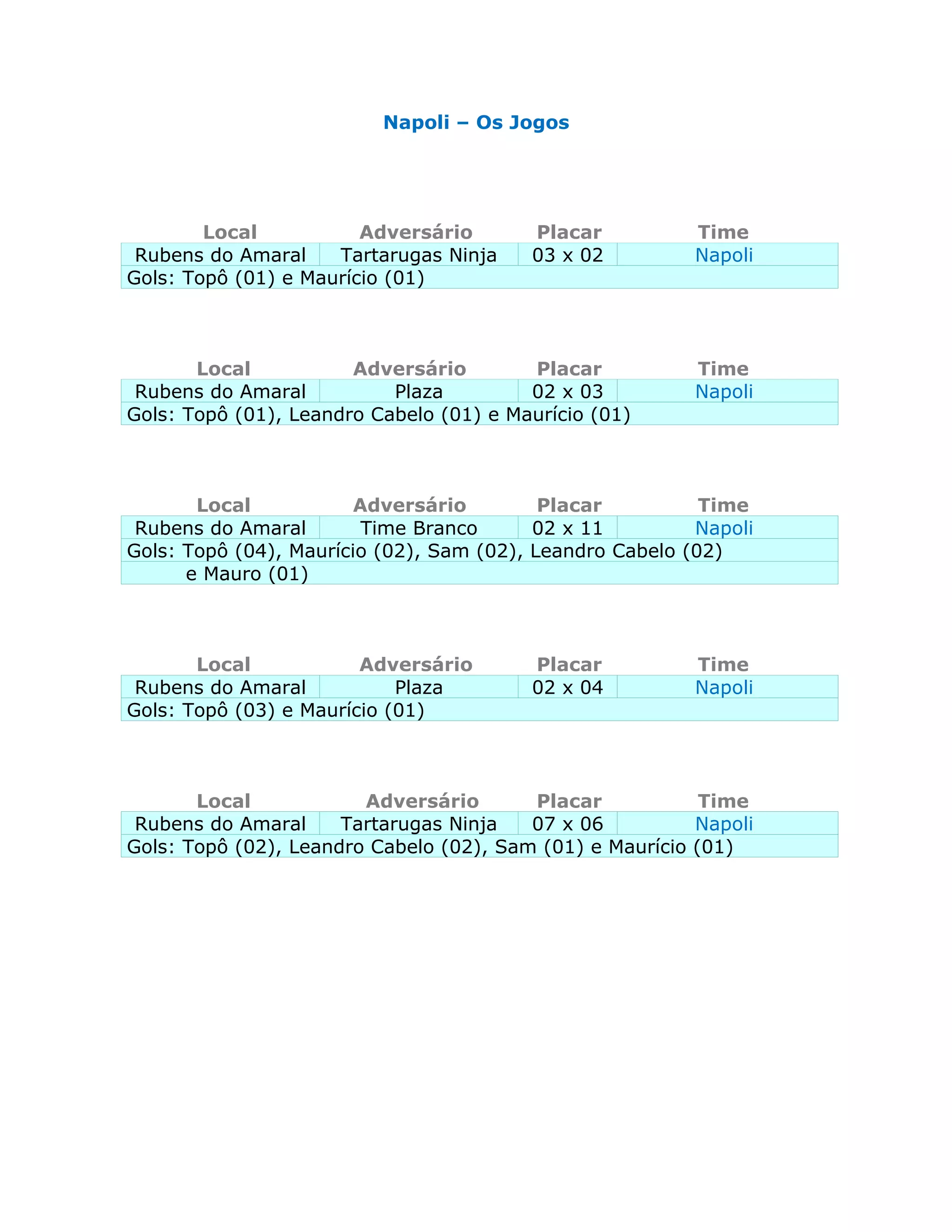 Rubens do Amaral Time Branco 02 x 11 Napoli