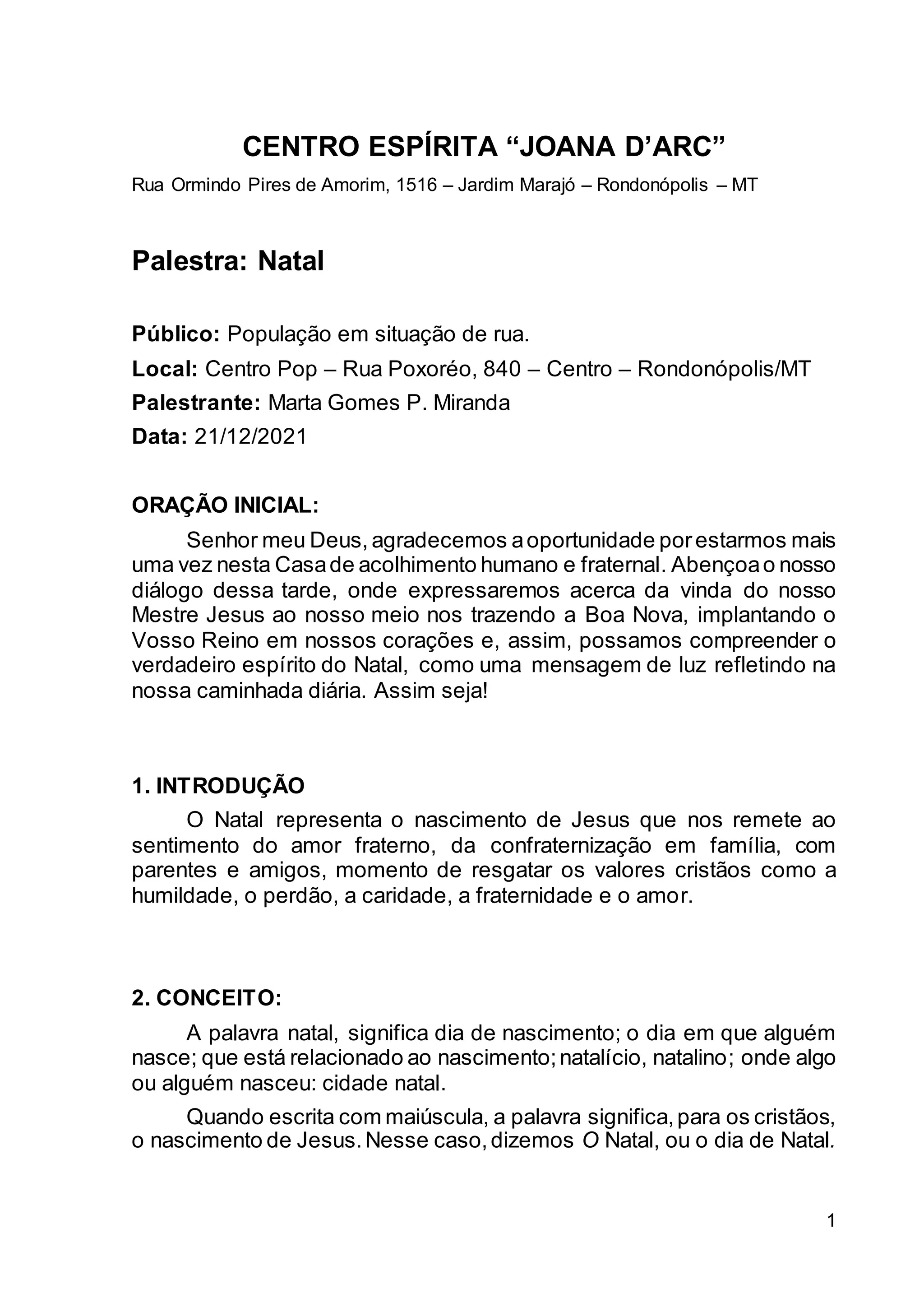 O documento apresenta uma palestra sobre o verdadeiro significado do Natal, ressaltando a importância de valores como amor, caridade e fraternidade, em oposição ao consumismo. A origem do Natal, ligado ao nascimento de Jesus, é discutida, destacando como a sua humildade e exemplos de amor devem ser homenageados por meio de ações e reflexões no cotidiano. O texto conclui que o Natal deve ser uma celebração contínua do amor e da reforma espiritual, não limitada a um único dia do ano.