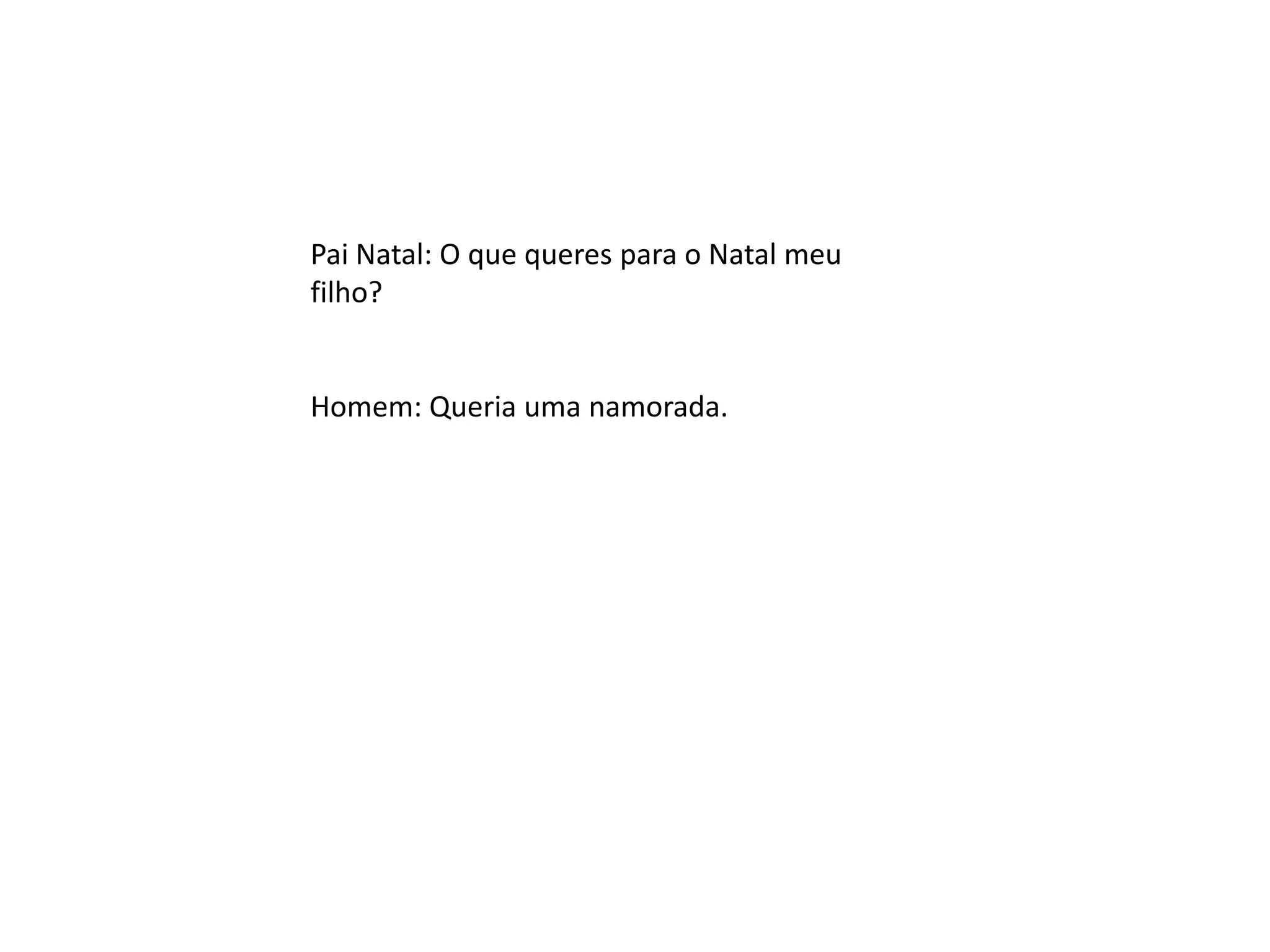 Pai Natal: Oque queres para o Natal meu filho?Homem: Queria uma namorada.