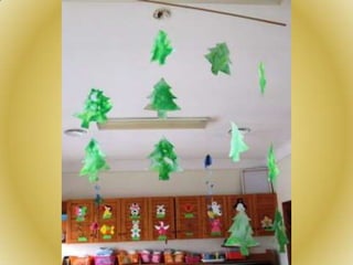 O documento descreve vários projetos de artesanato natalino feitos por Cíntia e Gonçalo em novembro e dezembro, incluindo uma estrela de madeira, pinheiros de espuma, um postal pintado e uma caixa para sabonetes também usando a técnica da espuma. Fotos mostram os resultados finais dos projetos.