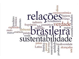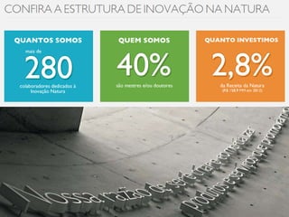 A Natura foi fundada no Brasil em 1969 e atualmente tem mais de 1,6 milhões de consultoras em 7 países. Nos últimos 3 anos a empresa cresceu em média 40% ao ano, faturando R$7 bilhões em 2013. Nesse ano, a Natura investiu R$553,9 milhões em tecnologia, logística e inovação.