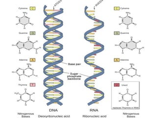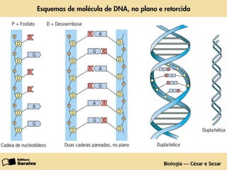 O documento descreve a estrutura e componentes do núcleo celular. O núcleo contém o DNA, que armazena a informação genética da célula e regula suas atividades. O núcleo é rodeado por uma membrana nuclear e contém cromatina, nucleólos e cromossomos, que são formados por DNA e proteínas e contêm os genes.