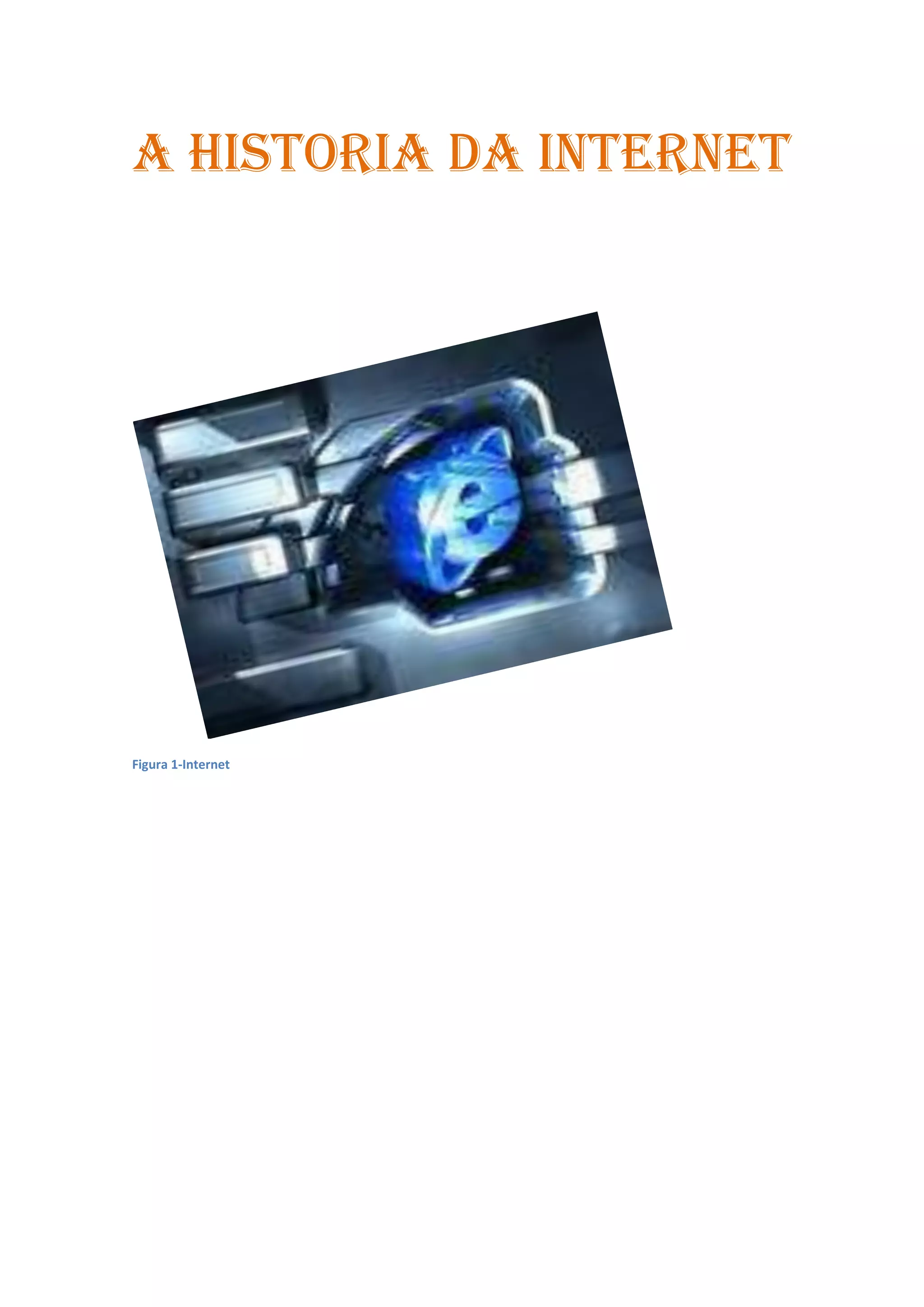Este documento descreve a história da criação da Internet. Começa com a criação da ARPA nos EUA em resposta ao lançamento do Sputnik pela União Soviética, com o objetivo de recuperar a liderança tecnológica. A ARPA criou o IPTO que promoveu a pesquisa de redes ligando sistemas de radar. Joseph Licklider liderou os esforços para interligar esses sistemas em uma rede. Mais tarde, o CERN na Europa foi responsável pela criação da World Wide Web, permitindo a troca de dados entre c