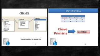 O documento discute os conceitos de índices em bancos de dados, explicando que índices são estruturas auxiliares que aceleram o acesso a dados em tabelas através de ponteiros para colunas específicas. Também diferencia índices compostos versus simples, internos versus externos e primários versus chaves primárias. Por fim, fornece detalhes sobre um trabalho realizado na disciplina de Banco de Dados pela turma 3oA Informática.