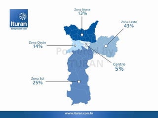 Este documento apresenta as estatísticas de roubos e furtos de carteiras de clientes da Ituran durante 2011, mostrando que os bairros de Ipiranga, Itaquera/São Mateus e Penha tiveram mais ocorrências, e os horários entre 20h-23h e 11h-14h foram os que concentraram a maior parte dos eventos.