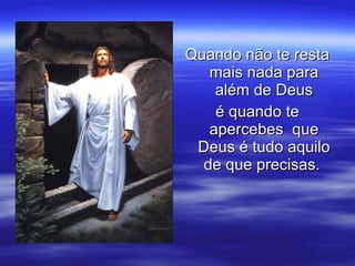 Quando não teresta mais nada para além de Deus é quando te apercebes que Deus é tudo aquilo de que precisas.