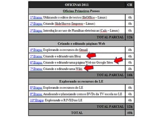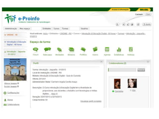 O documento descreve as ações de formação de professores realizadas pela Secretaria Municipal de Educação de Jaguarão/RS para o uso de tecnologias digitais no ensino entre 2011-2013. Detalha oficinas, cursos e recursos utilizados como blogs, wikis e ferramentas online para construir materiais didáticos digitais e desenvolver competências digitais dos professores. O objetivo era preparar os professores para usar as TICs de forma a democratizar o acesso ao conhecimento.