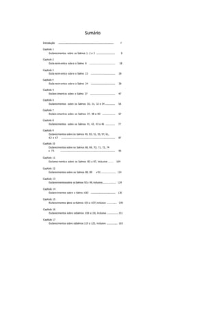 O livro fornece esclarecimentos sobre os significados esotéricos por trás de vários Salmos bíblicos importantes. O autor explica que os Salmos refletem diferentes estados emocionais humanos e fornecem soluções para problemas. No capítulo 1, ele discute o significado por trás do Salmo 1, enfatizando a importância de não seguir conselhos negativos e sim meditar na lei divina.