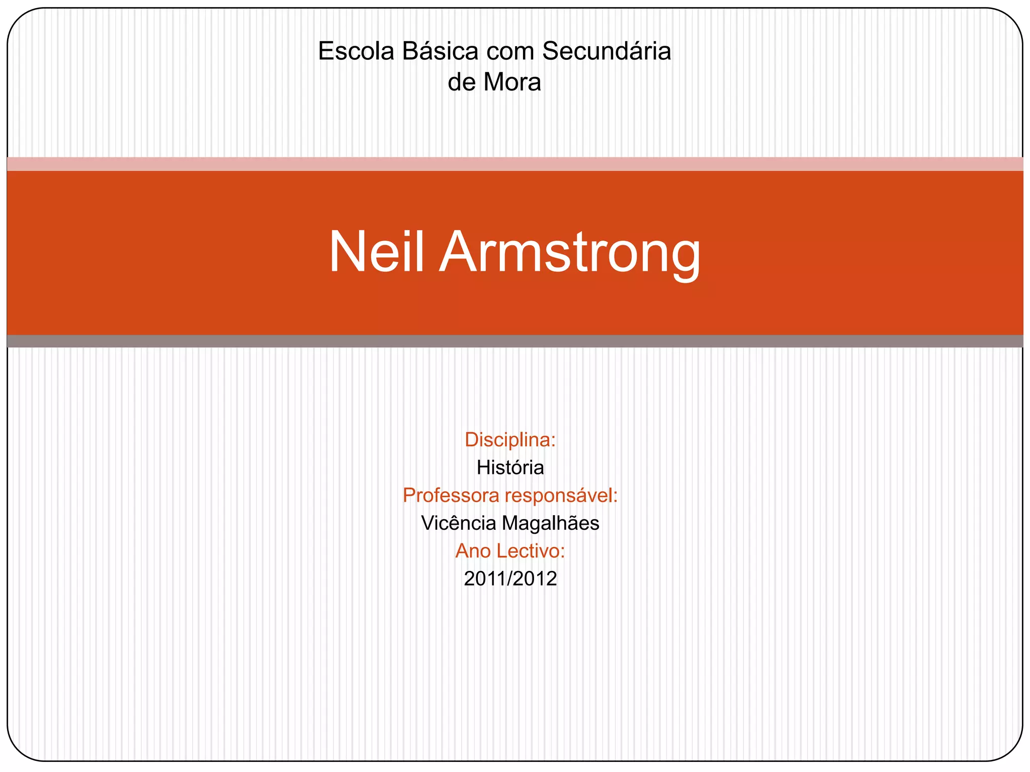 Neil Armstrong foi o primeiro homem a pisar na Lua em 20 de julho de 1969 como comandante da missão Apollo 11. Ele foi um astronauta da NASA, piloto naval e piloto de testes norte-americano. Armstrong interessou-se pela NASA em 1962 e foi selecionado para o Grupo dos Nove, tornando-se o primeiro astronauta civil dos EUA.