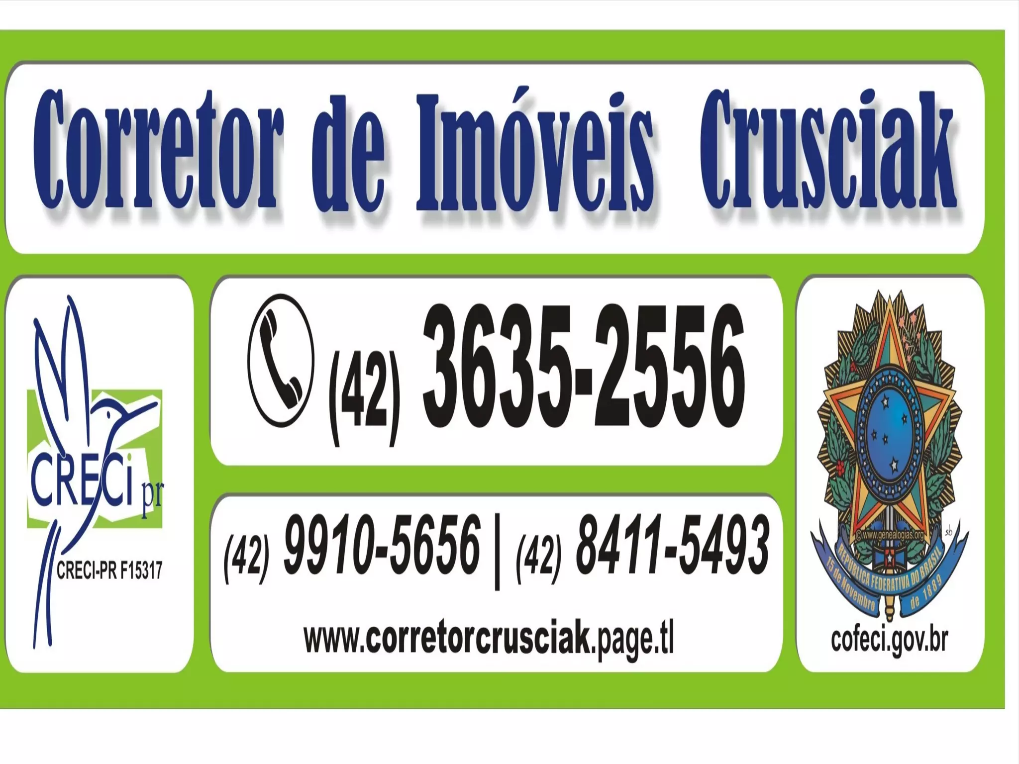 Este documento apresenta as informações de contato de Nelson Crusciak, corretor de imóveis que oferece serviços de compra e venda de imóveis com honestidade. Ele conta com assessoria jurídica e fornece seus contatos como telefone, site e endereço para facilitar o contato com clientes.