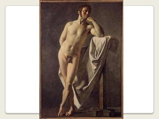 O documento descreve o estilo neoclássico e romântico nas artes visuais. O neoclássico seguiu os cânones clássicos da Grécia e Roma com foco na racionalidade, enquanto o romantismo enfatizou a subjetividade, emoção e natureza. Jacques-Louis David e Ingres foram pintores neoclássicos proeminentes, e Delacroix e Turner pintores românticos conhecidos por suas obras emocionais.